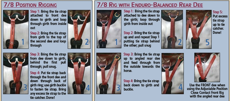 Enduro-Balanced Double Tie This type requires an english-style girth. Two separate billets attach to the girth--one attaches to the D ring and one to the back of the saddle. |